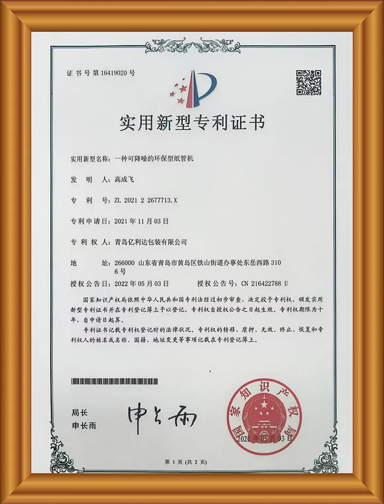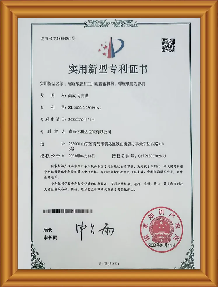 Gure produktuek FSC ziurtagiria dute, ISO9001 ziurtagiria, zazpi patente dituzte, besteak beste, U formako paper-hodi makina erosoa, Enpresa Txiki eta Ertainen ziurtagiri espezializatu eta berritzailea, Puni probak eta Kalitate Hornitzaileen ziurtagiria.